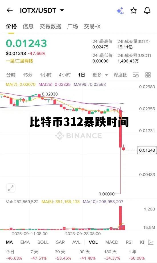 2、“312”魔咒再度来临,50万人1小时爆仓100亿元事件概述 今天早上,币圈经历了一次重大的市场崩盘过去24小时内,市场全线暴跌,比特币跌破5万美元的心理关口,市值也跌破1万亿美元以太坊从高位暴跌20%,从2643美元跌至2116美元,其比特币312暴跌时间他主流币如BNBXRPADADOT等也普遍跌幅达到20%左右在合约市场上;动荡幅度前所未有3月12日,BTC价格在短时间内经历了剧烈波动从18点左右的7300美元开始下跌,半小时内便暴跌至555555美元,跌幅近24%随后,在13号凌晨,BTC价格再次从6000美元滑落至4350美元,并最终在13号9点45分跳水至3800美元,24小时跌幅超过50%这种短时间内如此巨大的跌幅,在币圈历史上;美元,散户与矿工加杠杆做多,期货交易量激增此时市场被“减半牛市”预期主导,贪婪情绪达到顶峰庄家收割与恐慌蔓延3月12日比特币单日暴跌“312事件”,庄家通过空间换时间完成去杠杆与吸筹此后市场留下“减半做多阴影”,即便比特币深V反转。